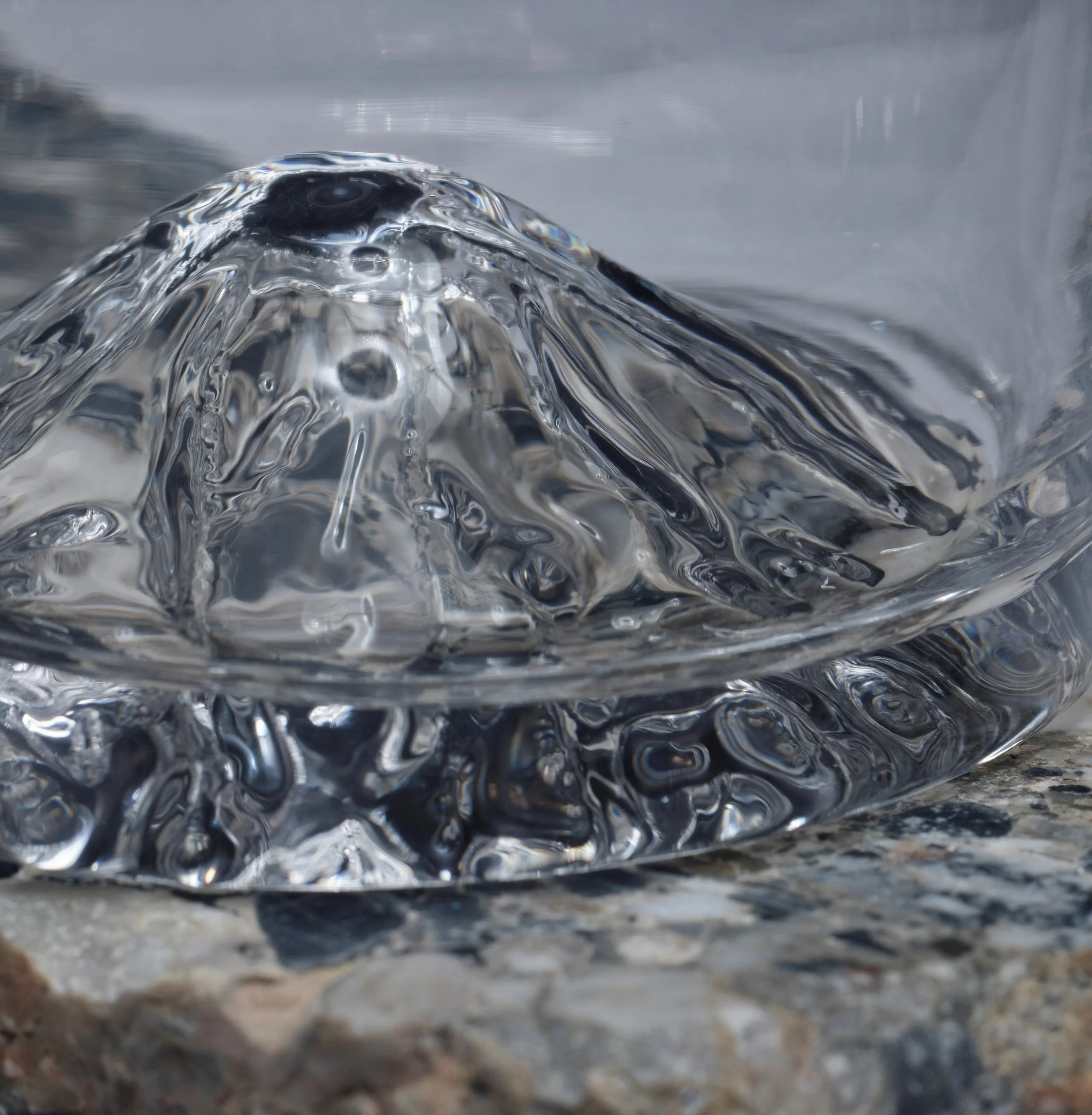 I produced the original tumbler whilst studying my MA in Ceramics & Glass at the Royal Collage of Art. After a year of R&D I took the mountain tumbler to the great Novotny glass studio in Novy Bor, up in the northern landscapes of Czech Republic. Together we made the mould for the tumbler and it is now produced by the master glass blowers in Czech Republic.